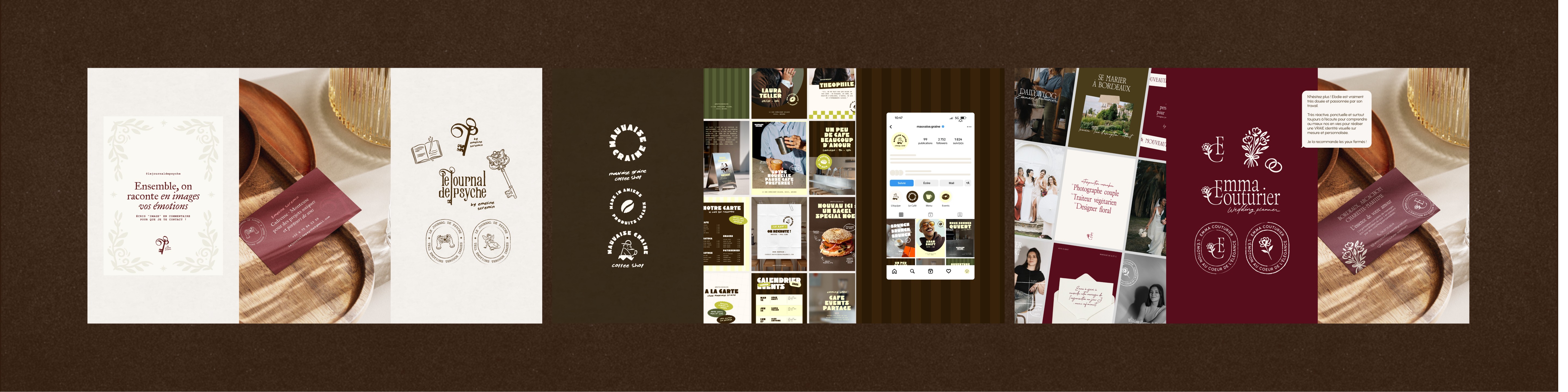 Je suis brand designer freelance et je choisis volontairement de travailler sur un nombre limité de projets. Cela me permet de consacrer à chacun toute mon énergie, ma passion et ma sensibilité créative. Chaque collaboration est un véritable engagement, humain autant que créatif.